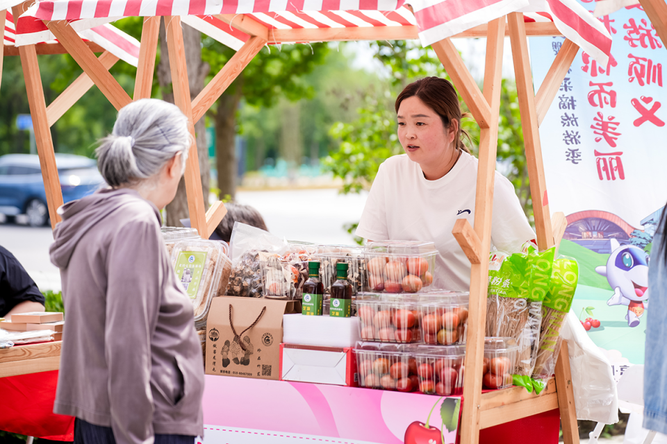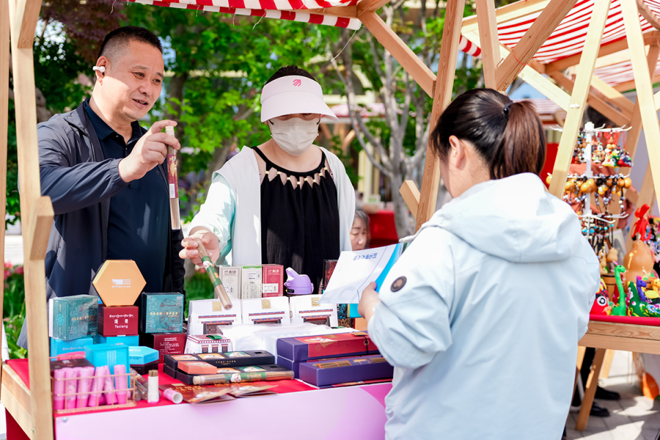 樱桃园展位前,果农体恤邀请旅客试吃选购;非遗展位里,押花葫芦息争九连环等传统技艺让旅客现场感受传统手工艺的魔力;顺意好礼展位集聚了秉性文创、贞洁农居品,成为旅客挑选伴手礼的“宝库”;更有龙湾屯集体林场和解救配合展位,带来生态好物与他乡风情。