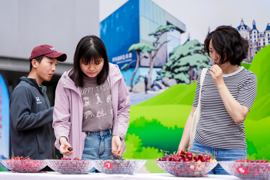 开幕式今日举办了“顺义樱桃评比会”,现场旅客化身“大家评委”,从甜度、颜值、口感等维度边试吃边投票。最终,顺丽鑫生态不雅光园、乾轩樱桃采摘园获评“口感奖”,双河果园、京北顺园获评“颜值奖”,巧嫂配合社、东谈主之初果园获评“心动奖”,三合樱源耕种专科配合社、旭日东效果品基地、向日葵三河农场获评“甜密奖”。