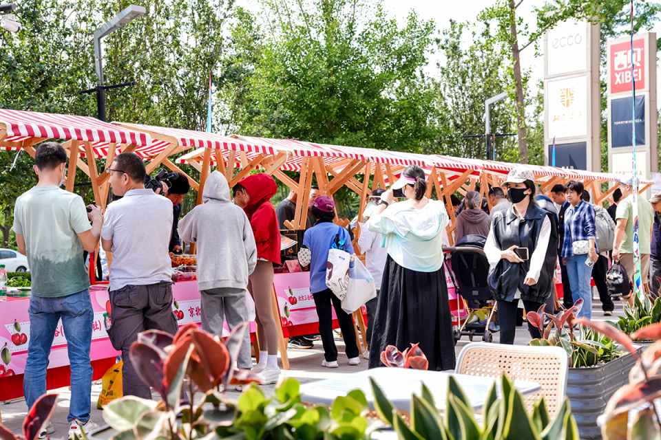 步履今日,中粮·祥云小镇南广场化身恬逸市场,20多个展位果香与燃烧气交汇。