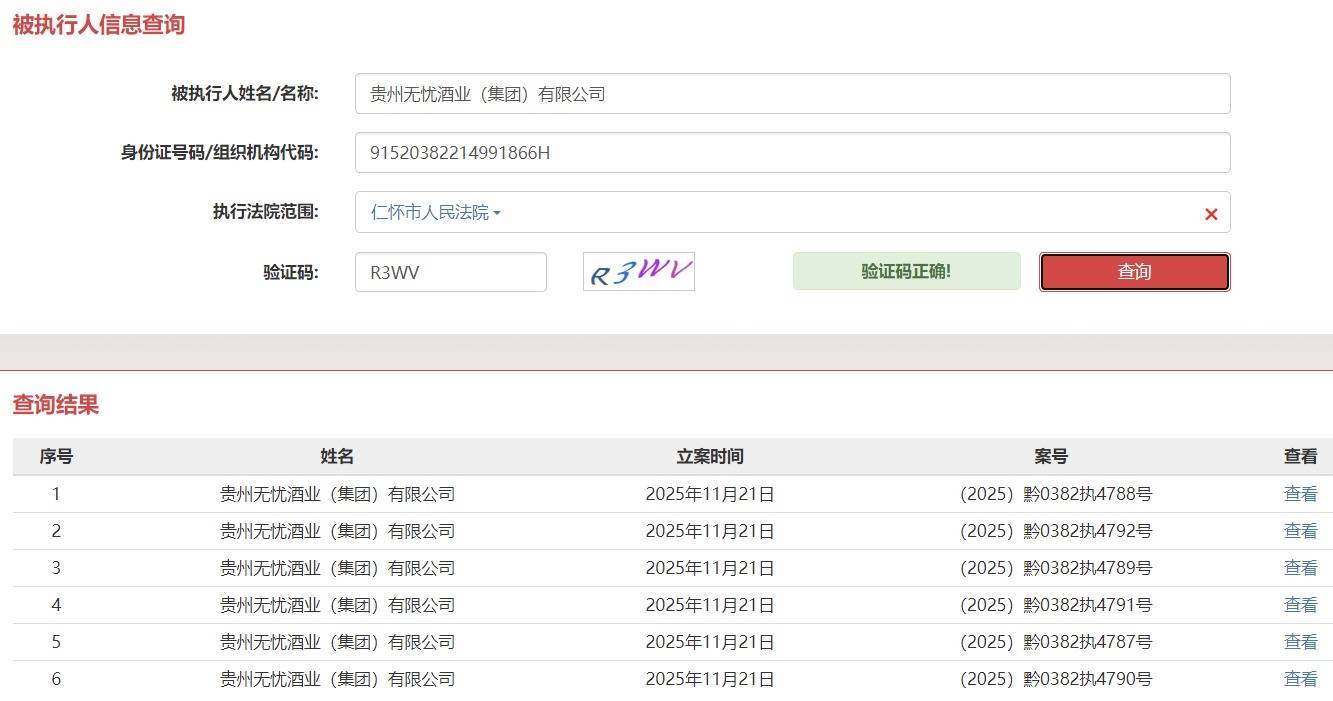 中国奉行信息公开网最新败露的数据夸耀,以“茅台镇第二据说”为愿景的贵州无忧酒业(集团)有限公司(以下简称无忧酒业),于11月21日新增6则被奉行东说念主信息,奉行法院为仁怀市东说念主民法院,总奉行成见约为6255.51万元。